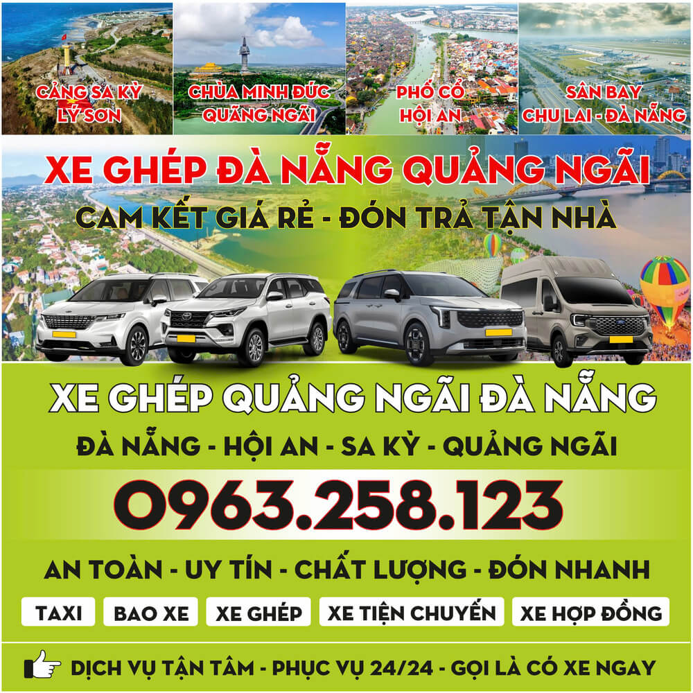 Nếu bạn đang lên kế hoạch đi lại giữa hai địa phương này, đừng bỏ qua lựa chọn thông minh và tiện lợi này. Xe Ghép Đà Nẵng Quảng Ngãi – hành trình an toàn, linh hoạt và đáng tin cậy cho mọi nhu cầu.